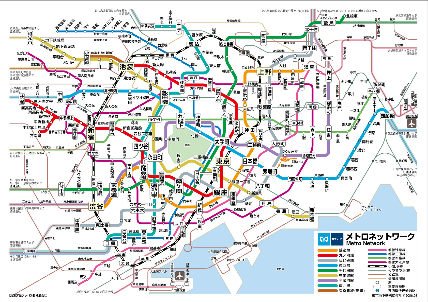 東京的地鐵有 Tokyo Metro東京地鐵(原營團帝國高速鐵道)與東京都政府經營的 都營地鐵 兩個系統。東京地鐵有8條線,都營地鐵則有4條線,包含「東京最後一條路面電車」都電荒川線。都營與地鐵的車站大部份都會共站,方便地鐵系統的轉乘,地鐵與JR相近的站有時候就會分開一段距離了。