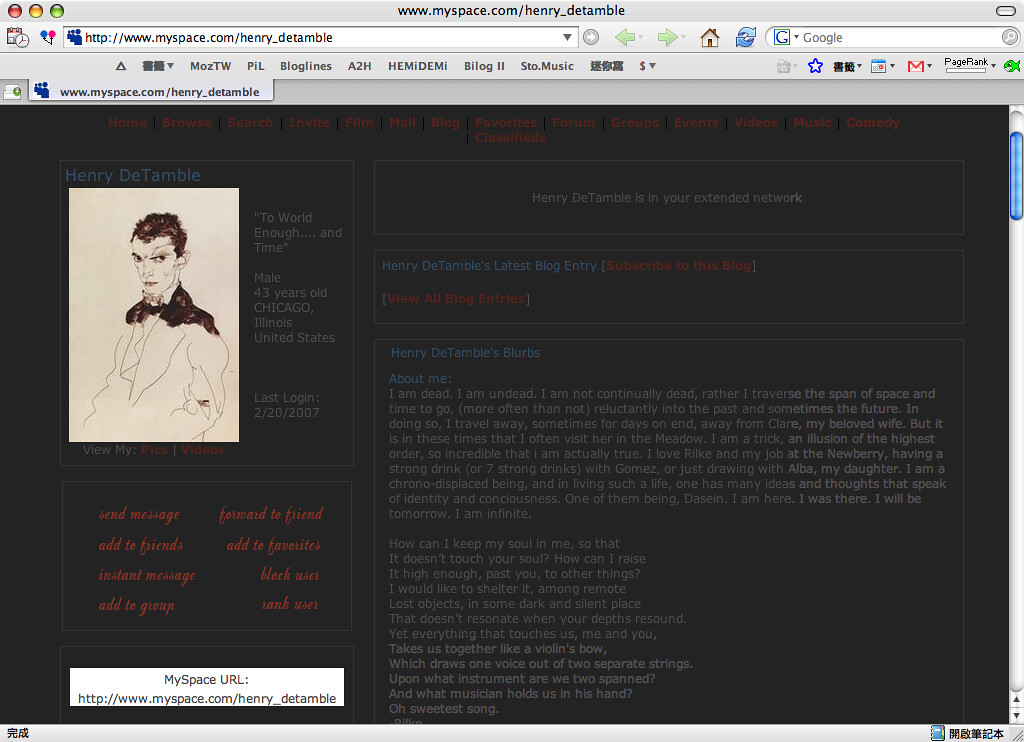 好啦,其實是發現 時空旅人亨利的 MySpace。