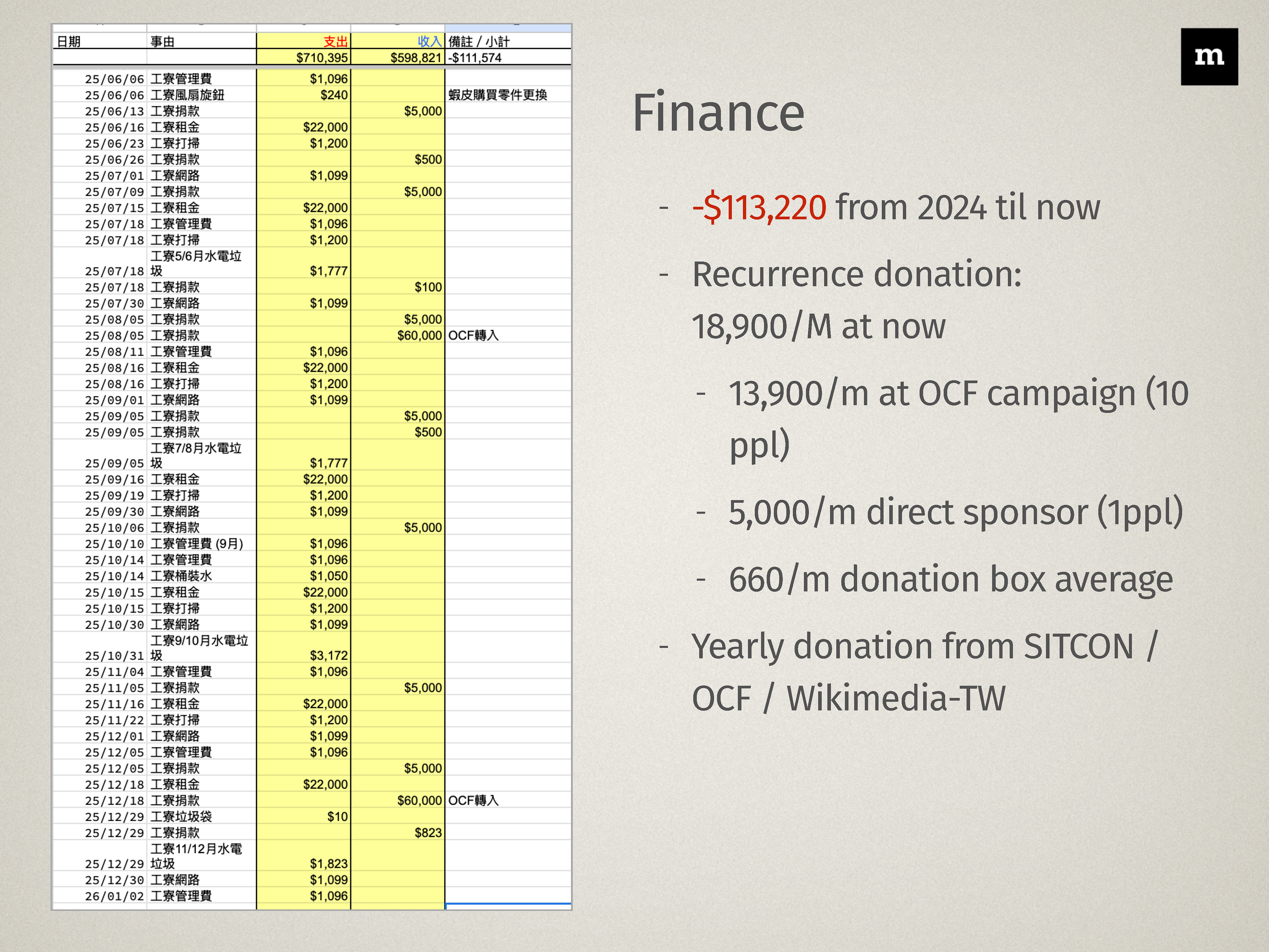 總結至 2025 底年底的財務狀況,我們目前為「負 110,475 元」。你可以在這邊看到完整的收支報表。